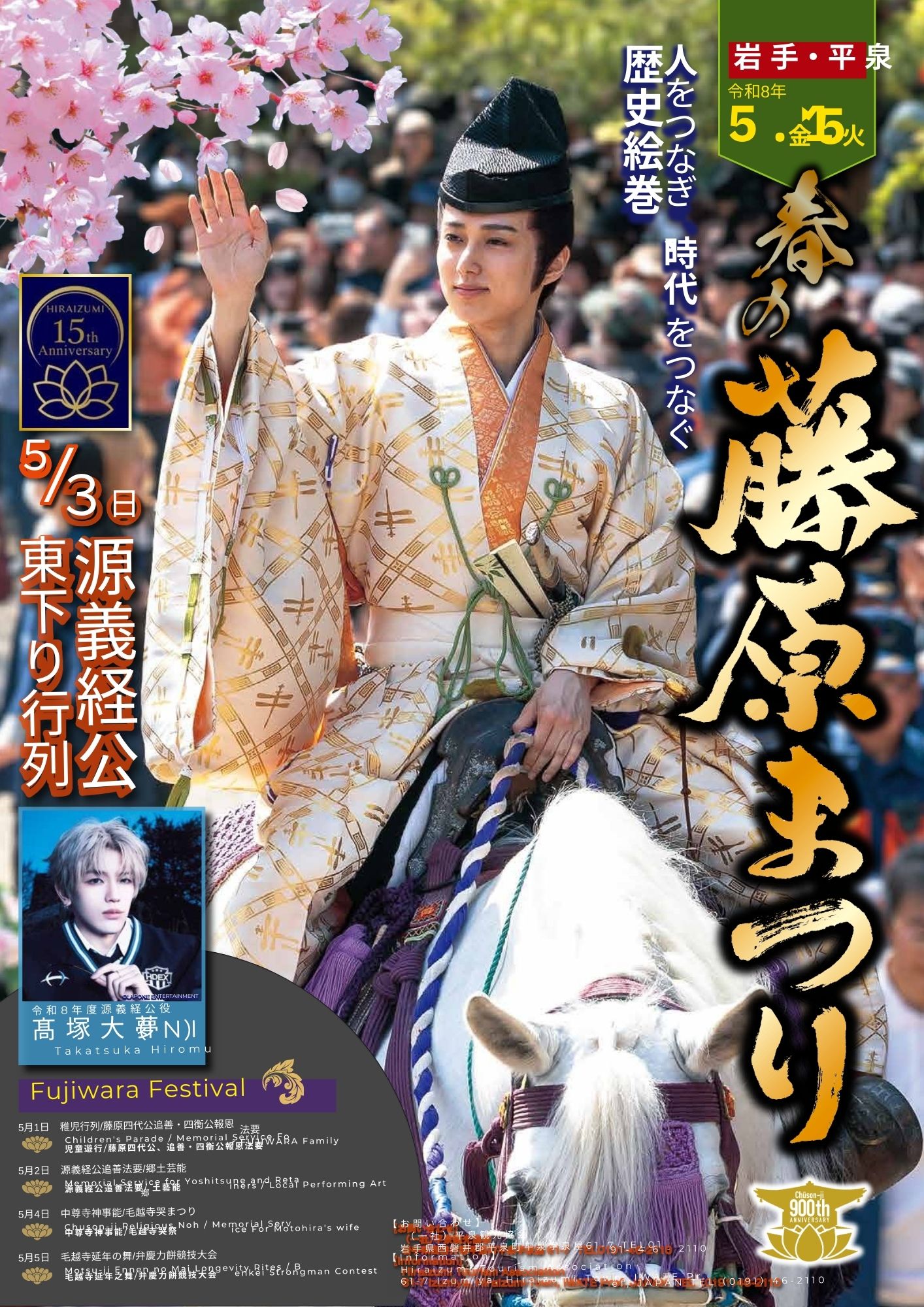 世界遺産 平泉 春の藤原まつり”源義経公”東下り行列((一社)平泉観光協会主催)